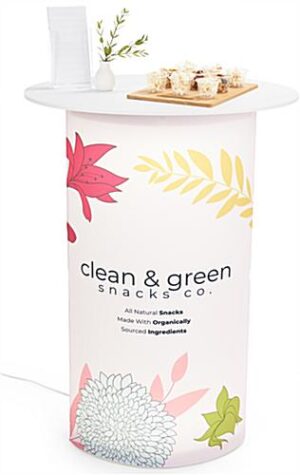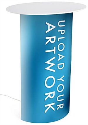 Our pop up counter includes a full-color custom printed graphic, allowing you to make a statement at your next work function, trade show, or in-store marketing event. This personalized FlipLight display folds entirely in half and can be stored in its convenient carrying case making it great for travel. This portable pop up counter has an easy no-tool assembly, allowing you to remove your display from the carry box and assemble it in minutes. The interior of the pedestal portion is lined with LED lights, bringing a brilliantly illuminated glow to your custom printed graphics that will be sure to grab customers’ attention. The white ABS tabletop has extra-strength magnets on the underside, making it effortless to attach the base and keep it firmly in place. The graphic for this illuminated portable display is made of soft backlit polyester material. It has a slide-on loading style with hook & loop at the top and bottom to further secure it to the podium. This FlipLight pop up counter will quickly become an event essential, making for effortless travel and set up!