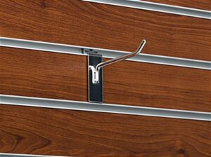 Upgrade your store’s look with this 4” chrome single hook pin for slatwall panels that comes in a set of 25 for convenience. Each of these sturdy retail accessories is made from heavy duty metal for durability that will last while holding up hanging merchandise. The tip of each angled single hook pin for slatwall displays tilts upwards 30° to prevent products from sliding off while on display.