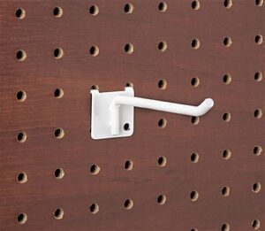 These 4 inch pegboard hooks are ideal for organizing your garage or at-home workspace and fit any 1/4″ hardwood board. Pegboard displays can be used by retail stores, hardware suppliers, and much more. The pegboard hooks are ideal for a variety of uses and purposes.
