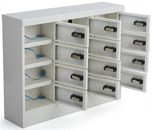 4 Tier Lockers w/ 12 Cell Phone Charging Slots, Combination Lock, Steel – White