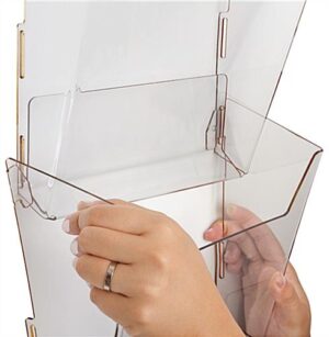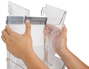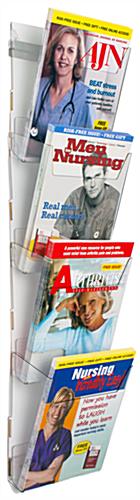 This magazine wall rack is a space-saving solution for displaying publications. The literature display is designed to be mounted on the wall. This hanging system, magazine wall rack is made of high impact acrylic with a clear finish for use in any environment. Each unit is sold with four literature holders included. This magazine wall rack that has a stackable design allows users to show different publications on one single unit. The literature display has a deep design which enables users to hold multiple periodicals. Users can display any standard size 8-1/2″ wide publications on this hanging magazine wall rack that has 4 individual angled pockets. The fact that this literature organizer has a clear finish also provides maximum visibility to the front cover page for easy identification.