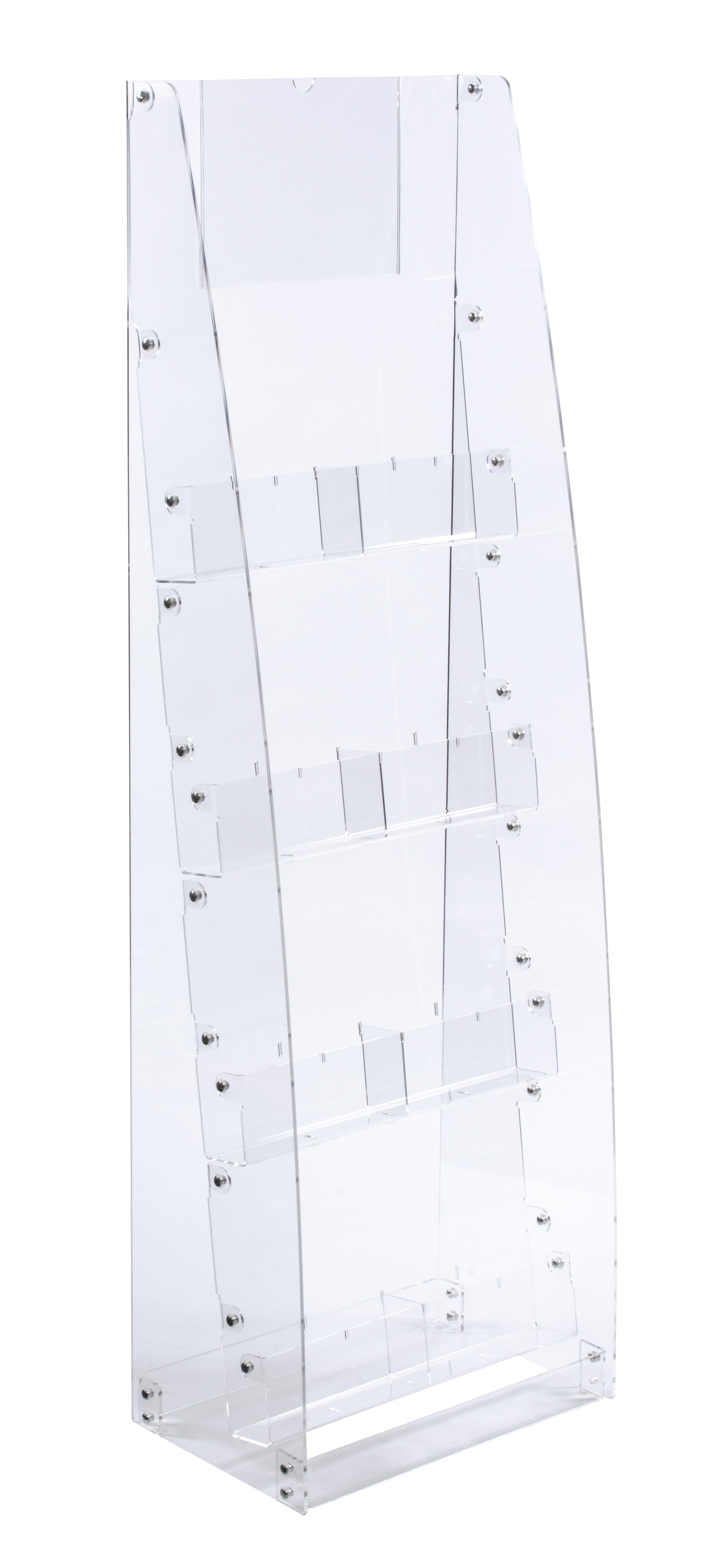 4-Tiered Recycled Acrylic Literature Floor Stand, 4″/8.5″w, 8/16 Pockets – Clear