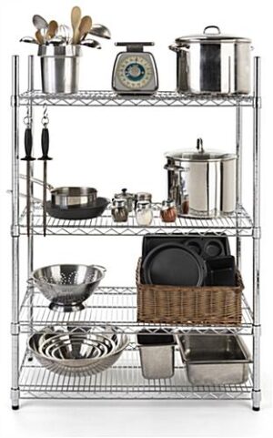 Free Standing Wire Shelving with Four Adjustable Tiers