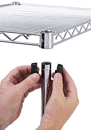 This chrome commercial wire rack shelving is ready to handle all your high quantity and heavy load storage needs. The NSF certified industrial grade display features four heavy-duty 24” deep tiers, 16 clips that make these levels adjustable, 1.20” pole frame, and protective plastic feet. Use this commercial wire rack shelving in a variety of settings, including kitchens, storage rooms, garages, and retail spaces. With a weight capacity of 330 lbs per tier, this display offers plenty of space for anything you want to keep off the floor but still within reach. Optional locking wheels and acrylic insert (sold separately), make this industrial grade storage unit transportable and allows you to store small merchandise. Let this commercial wire rack shelving with chrome finish organize and simplify your work environment.
