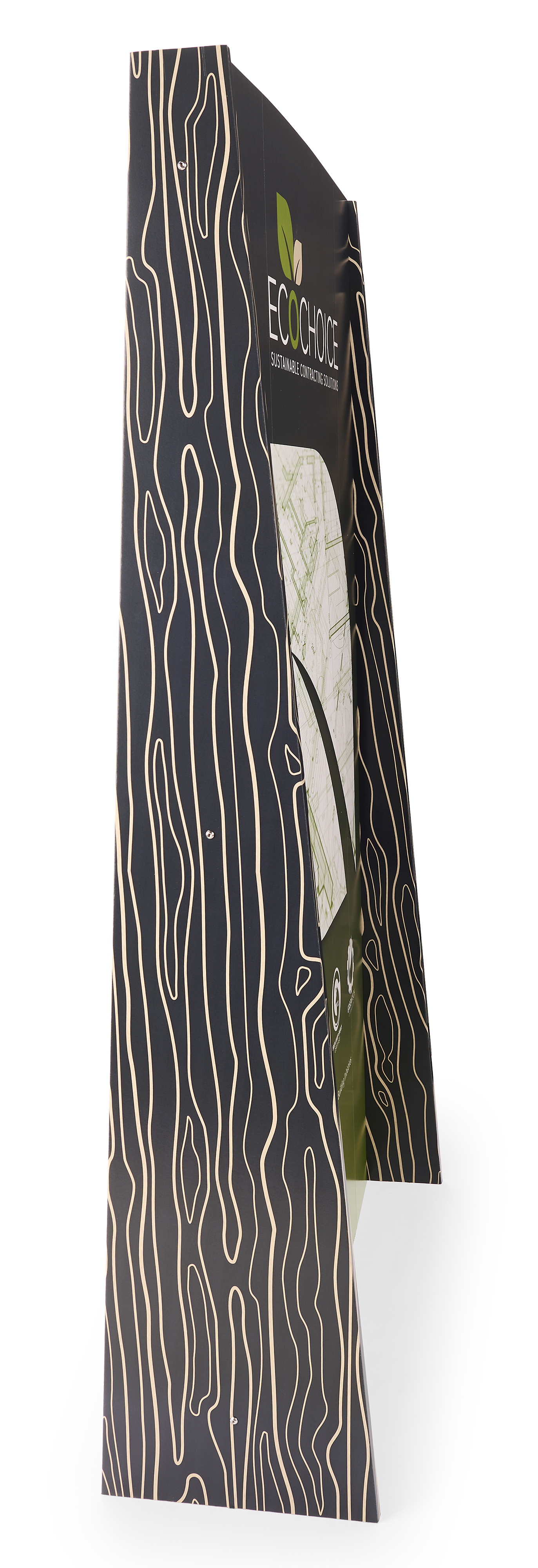 Make a sustainable signage swap with our eco-friendly meter boards for your next event! The 100% recyclable substrate is an FSC-certified Xanita board featuring a high-crush strength kraft core made from post-consumer recycled kraft paper waste. The front and side panels feature full-color personalized graphics using non-toxic water-based ink that is better for the environment. The lightweight sign design ships in a flat-pack box, allowing for easy transportation from one event to the next. The floor-standing eco-friendly meter boards can be set up in minutes with minimal hardware and no tools, letting you effortlessly reinforce your brand creatively while providing helpful information about your products and services. The durability of this unit allows it to be used several times before disposal and can be recycled once it reaches the end of its lifecycle.