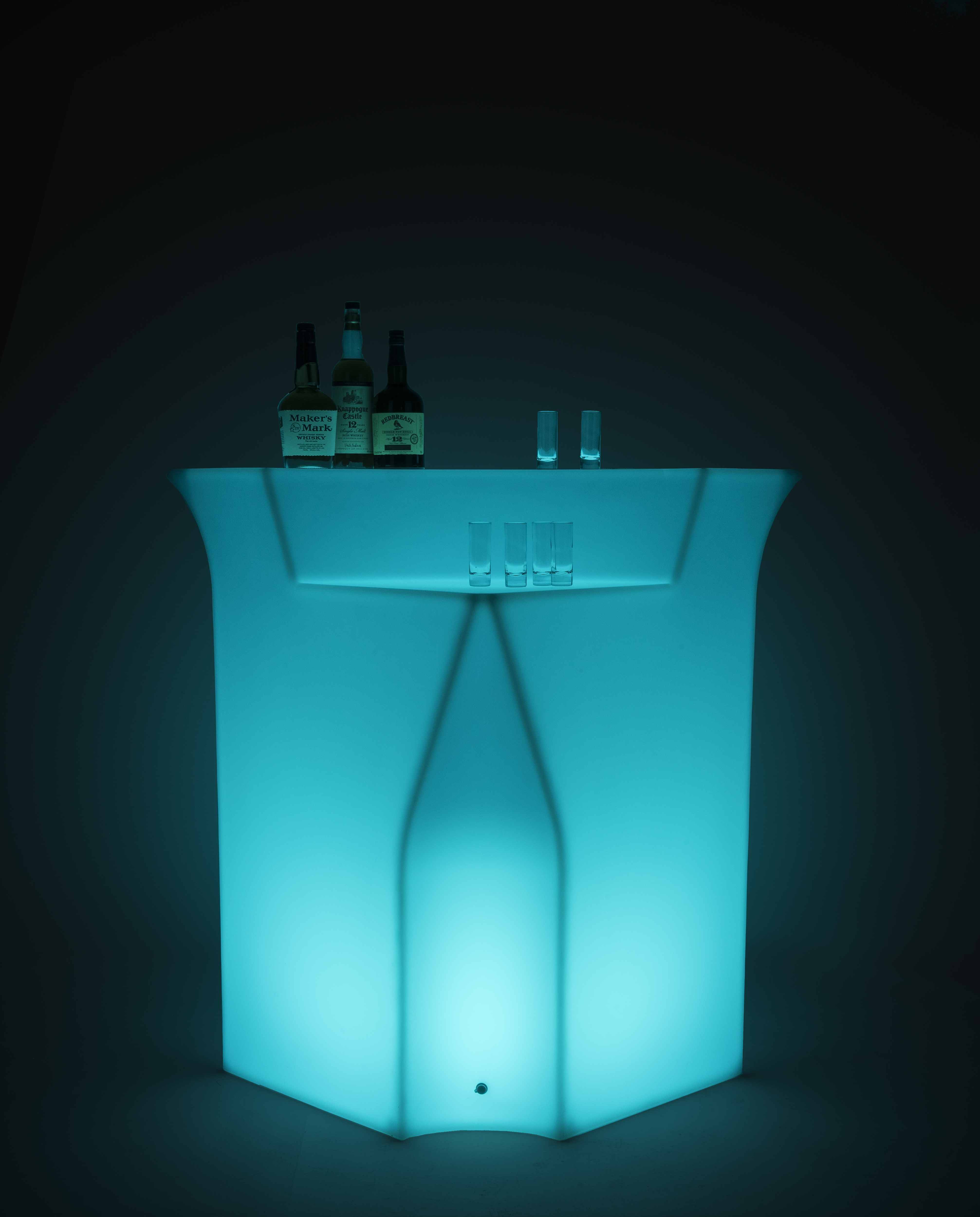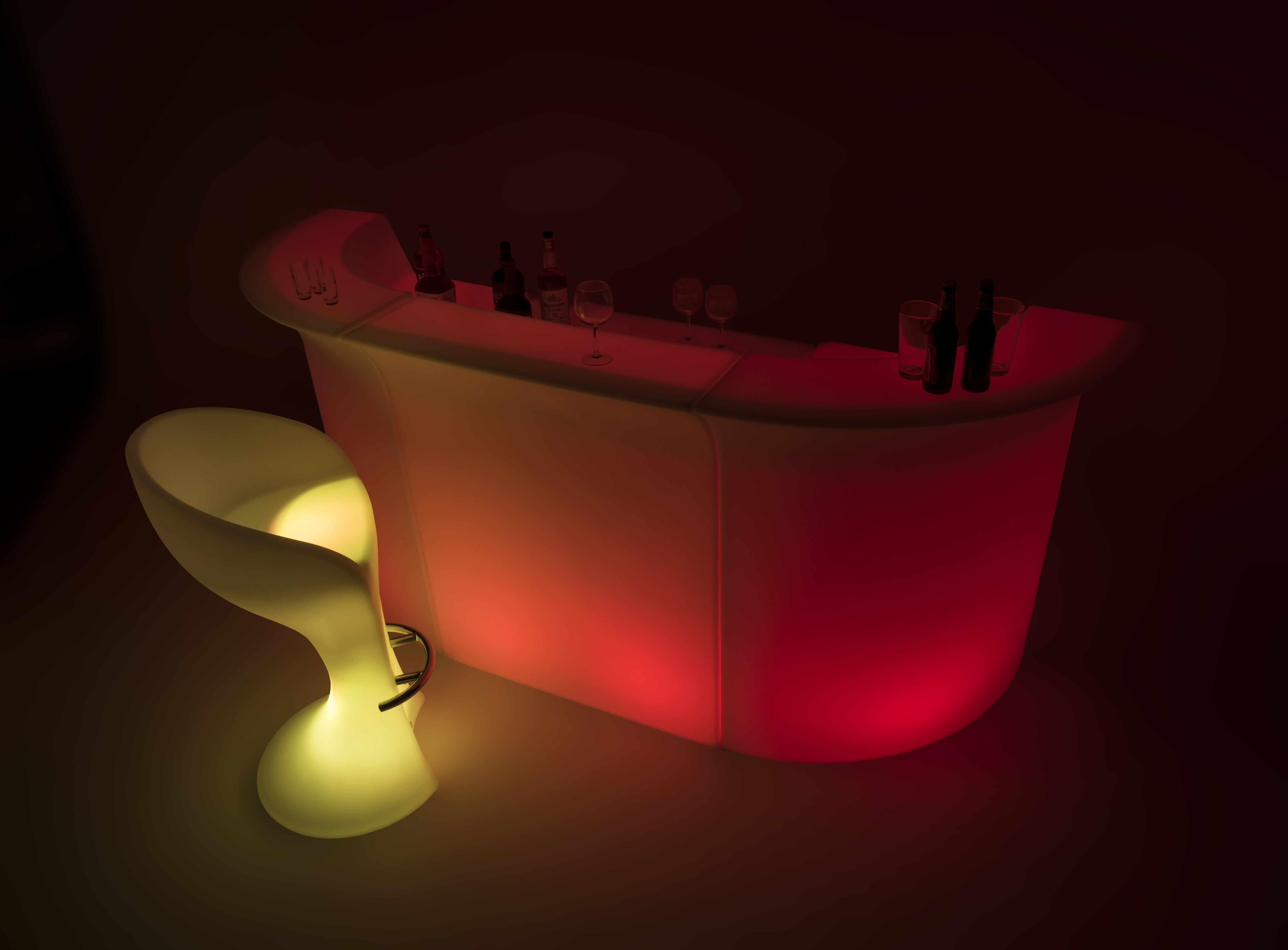This modular LED corner bar is a surefire way to get the party started in your nightclub or cocktail lounge. A lighted interior allows this glow furniture to bathe any darkened space in one of 16 gentle tones that help set the mood. This rechargeable modular LED corner bar can operate for up to 12 hours on a single charge to keep the party going all night. In addition to the solid lighted color mode, flash, strobe, fade, and smooth transition options can further differentiate your unique setup. Step out of the nightclub and set up for an outdoor event, thanks to the water-resistant design. Pair this LED corner bar with matching glow furniture to create a unique, curved drink counter that will wow your guests.
