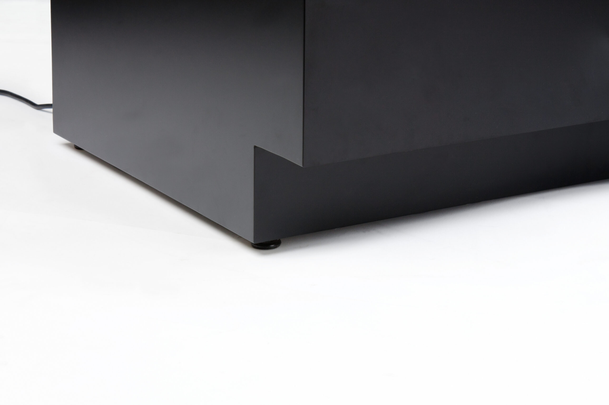 This quarter-vision corner jewelry showcase with LED lights is ideal for any upscale retail store. Constructed of MDF and tempered glass, this commercial counter is built to last! Each jewelry showcase with LED lighting features an attractive black base with a semi-gloss finish accentuating any fine department store! With LED lights casting a pleasing warm glow on products within the counter, merchandise will look its best! Merchants use a jewelry showcase that has LED lights, as this type of lighting lasts longer than traditional halogen lighting. LED lights are also more energy efficient. This display cabinet, jewelry showcase with LED lights stands at 42″ in height, almost 4″ taller than traditional counters. This design ensures customers can peruse the merchandise without having to bend over. Each quarter vision jewelry showcase with LED lights features two sliding glass doors accessing the merchandising space. Once a customer has made their selection, merchants can easily access products by simply unlocking the glass doors and sliding them open. A jewelry showcase with LED lights, like a display counter, is sold as part of the Grace Tyler series. Design a unique store presentation with showcases from this collection!