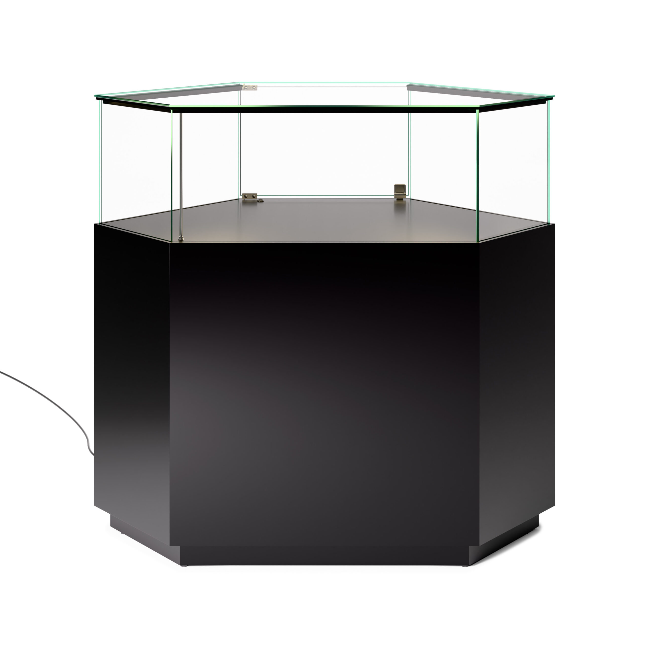 44″ Quarter Vision Corner Display Case w/ Drawers, Ships Assembled – Black