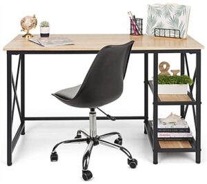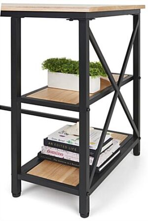 Wood and Steel Desk with Two Built-In Shelves for Added Storage Space