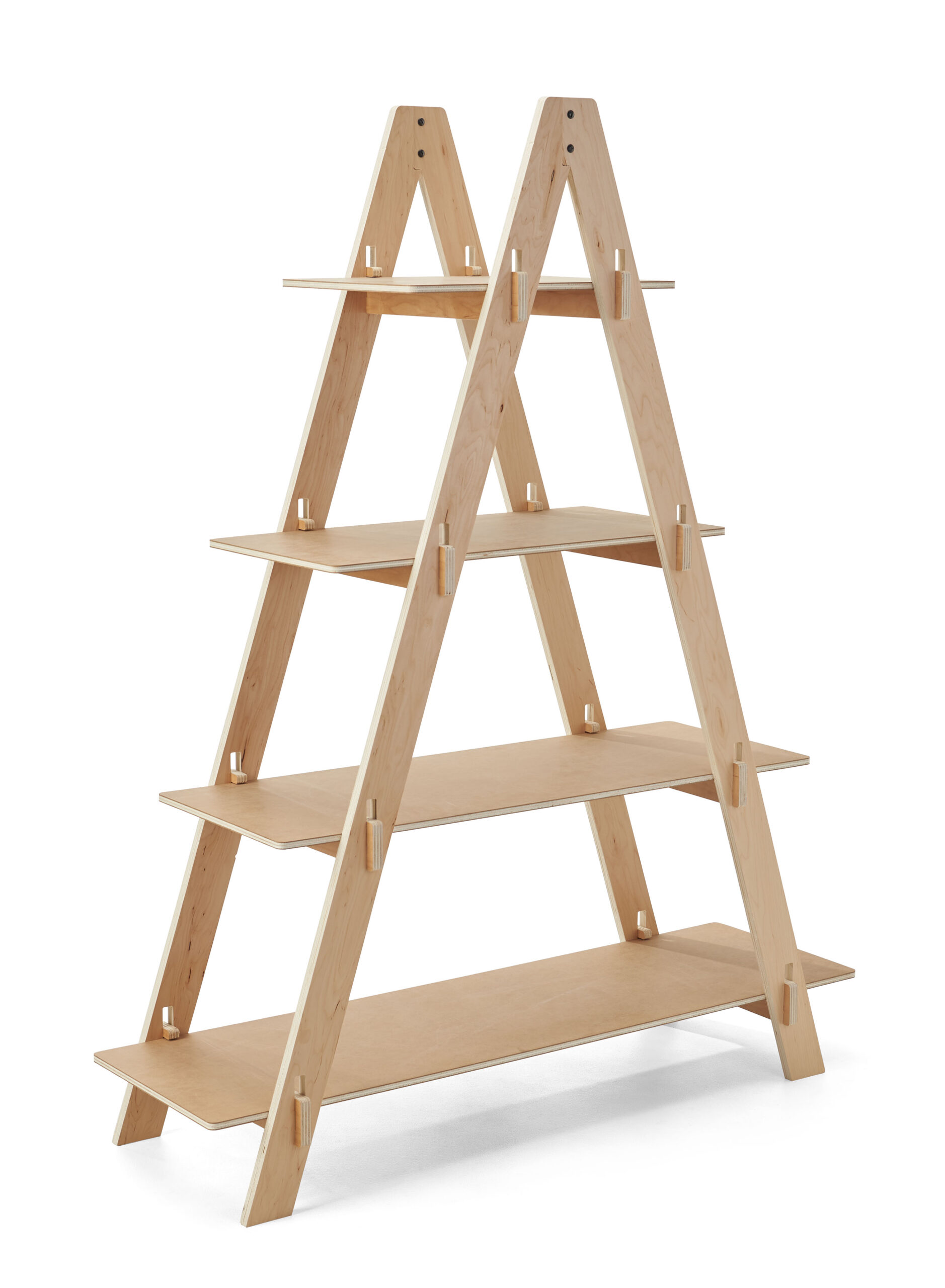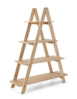 Our a frame shelf is the ideal fixture for showcasing your best merchandise in retail stores, boutiques, gift shops, and more. This 4-tier retail display makes your products the main focus of any presentation without clashing with the decor style of your space. This a frame shelf with natural laminate finish is constructed of FSC® certified poplar wood and 1/2″ thick high-density fiberboard shelves for a stable shelf design that can endure the damaging effects of a high-traffic environment. Designed to be used for temporary setups, each wooden merchandising fixture assembles and disassembles quickly. The lightweight build of this a frame shelf with flat-pack design makes it highly portable, perfect for traveling exhibits like trade shows, pop-up shops, craft fairs, and art festivals. Coordinate this 4-tier retail display with matching fixtures (sold separately) for a custom display that meets your merchandising needs. Stand out in a crowd with this wooden shelving rack that will grab your audience’s attention and leave a lasting impression long after they leave!