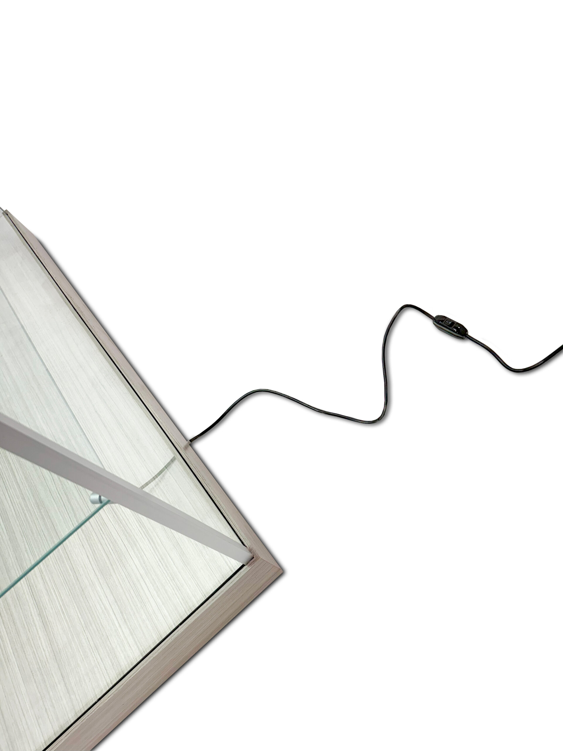 48” Frameless Display Case w/ 5 Tempered Glass Shelves, LED Lights – Concrete Groovz