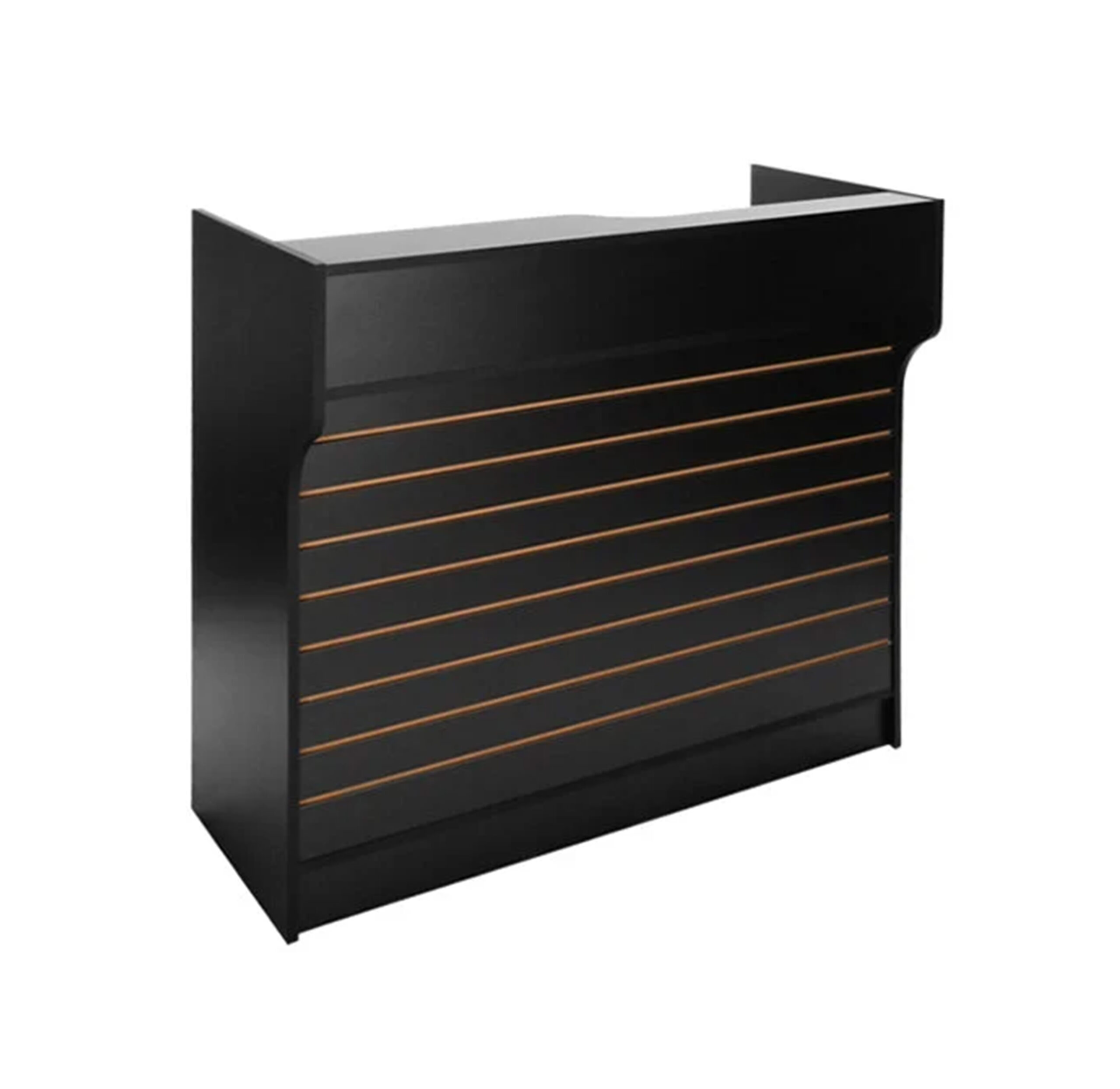 Enhance your checkout area with this ledgetop service counter, available in black or maple, featuring an 8-slat slatwall front panel to showcase impulse retail items and increase sales. This register stand is built for both security and efficiency. It features a locking cash drawer, a 22″ recessed ledge for discreet transactions, and two adjustable shelves for organized storage. The integrated cord management keeps your workspace tidy, while the 9″ customer writing surface provides a convenient spot for signing receipts or filling out forms. This ledgetop service counter is durable and stylish for boutiques, convenience stores, and specialty shops looking to combine functionality with an attractive, sales-boosting design.