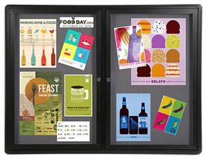 An enclosed fabric board is ideal for posting messages, artwork, posters, announcements, and schedules. Memos can easily be tacked to this indoor display. Each enclosed fabric board, with locking doors, has a self-healing backing. Messages can be tacked to the covered unit over and over again. This enclosed fabric board, that is an indoor display, is designed with a black aluminum frame. Each gray bulletin is both durable and attractive for high traffic areas. An enclosed fabric board, for messages, has a large interior space of 4’ by 3’ to post a significant amount of information. Communicate with guests and visitors of an establishment with this locking bulletin!