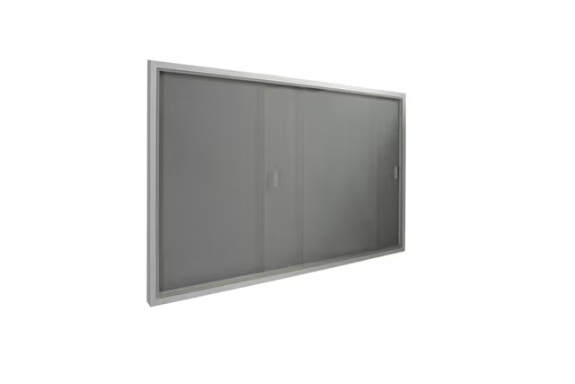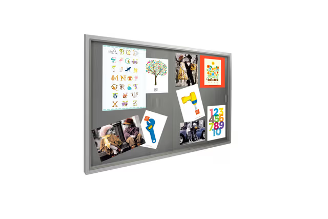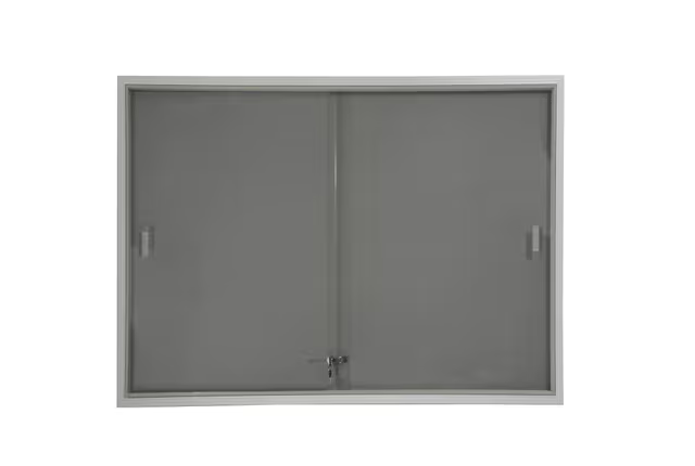 Post messages, photos, announcements, and notices to this glass bulletin board, and be confident they’ll be seen and stay safe from tampering. Each cork display has a large surface area with ample interior space behind sliding glass doors. This glass bulletin board, with an aluminum frame, is ideal for wall mounting in a high-traffic area. Indoor corkboards can hold an extensive amount of information to communicate to the public. A glass bulletin board, that mounts to the wall, can be seen from across the room due to its massive size. A cork display will relay messages to guests, visitors, students, teachers, and employees. This glass bulletin board, for indoor use, is useful for a range of locations and spaces in your venue. Purchase a cork display for classrooms, schools, offices, community centers, and libraries. A glass bulletin board, that has sliding doors, features a cork backing. These corkboards are covered with a gray-colored fabric. This glass bulletin board with a cork display surface will complement many environments. The silver aluminum frame and gray fabric are both attractive and functional. Users can easily open and close the sliding doors constructed onto this glass bulletin board, protecting their posted announcements. The unit is lockable and durable for long-lasting use. This indoor cork display, glass bulletin board can be mounted to a large wall space to help your message stand out in a busy location.