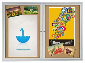 48 x 36 Enclosed Cork Board with 2 Locking Doors – Silver