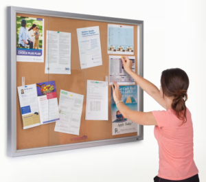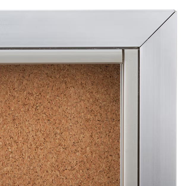 This indoor aluminum corkboard, glass enclosed bulletin board is essential to convey critical news, important information and postings. A wall-mount message display keeps the community enlightened and knowledgeable. This indoor glass enclosed bulletin board is engineered from an aluminum frame to tolerate any high-traffic and busy environments. Each unit has a classic beautiful brushed silver finish that fits easily to any interior business environments. This glass enclosed bulletin board that is for indoor use has a 45″ wide by 33″ high self-healing cork posting surface. The large interior provides users with plenty of room to exhibit all the important information. This glass enclosed bulletin board that has an inner corkboard will hold tacks, push pins and staples in place. The self-healing surface is designed for repeated tacking.