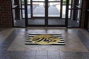 This holiday sale store floor sticker is made from durable vinyl with an easily removable adhesive that lasts up to three months. The large size and eye-catching design make this signage solution ideal for busy retail environments where directing attention can be a challenge. Help to guide customers to limited-time deals with this black & gold striped holiday store sticker – the non-traditional design makes it stand out while creating a festive atmosphere.