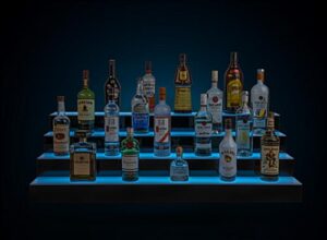 Lighted Liquor Bottle Bar Shelves with Programmable Color LED Illumination