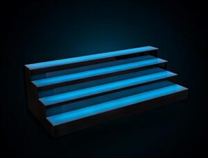 These lighted liquor bottle bar shelves use LED illuminated steps to create a one-of-a-kind display for drink offerings whether you’re entertaining guests in your business or at home. At 48” wide, there is plenty of space to showcase everything you have in stock. Set these 4-tier lighted bottle bar shelves to a multi colored strobe, fade, or pulse mode or one of 16 static hues to achieve a truly unique look. When it’s time to change things up, you can do so easily using the included remote control. Each tier is made from acrylic, and the charge port is installed with a rubber plug to help guard against spills and condensation. A 12-hour operating time allows these lighted bottle shelves to create a stunning display for an entire night of service without cord clutter or even travel to an event or pop-up engagement.