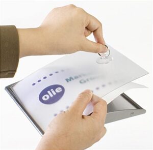 • Suction cup included for customers to easily lift provided lens for quick signage changes.