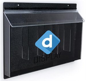 This printed realtor style outdoor flyer dispenser rack features 5 sections to distribute 4 x 9 pamphlets to potential customers. A hinged lid weatherproofs this multi-pocket brochure box, keeping rain out while still allowing easy access to the enclosed written materials. Mount this outdoor acrylic flyer dispenser rack to a wall with ease using the included hardware and the 4 pre-drilled holes. This multi-pocket brochure box utilizes UV printing technology allowing you to display your custom graphics on the front and hinged lid of the literature holder. Your pamphlets are sure to stay dry due to the durable acrylic and ABS construction. This weatherproof flyer dispenser rack makes the perfect literature holder!