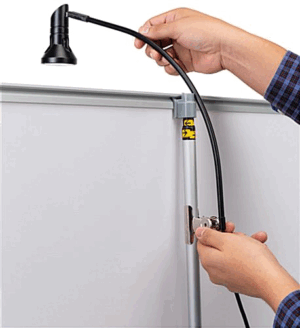 Our LED clip on clamp curved spotlight integrates modern design, ease of use, and energy efficiency. The 5 Watt LED light will deliver 20,000 continuous hours of illumination to bring attention, elegance, and style to your trade show. This retractable banner curved spotlight will enhance your professional brand by setting the perfect stage for you to communicate a clear message to your costumers. With a discreet design and modern profile, the trade show LED light highlights your products with a natural white 4500-5000 kelvin light. A strong clip on clamp is super easy to use and opens up to 0.629” to securely fit most retractable banners or poles. The elegant profile of this trade show curved spotlight is equipped with an adjustable head that allows you to change its position and highlight different light beam angles.