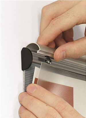 These indoor wayfinding signs are equipped with protective plastic lenses to prevent scratches. However, the lens is not water resistant and should not be used in an exterior setting. These wayfinding signs for custom graphics are made for 5″w x 7″h inserts. The visible height is only 6-1/8″, as approximate half an inch is covered by the snap frames on both the top and bottom. These interior wayfinding signs with aluminum design are perfect for use in large buildings like offices, universities and public buildings. Custom inserts for these directional signage solutions can easily be created with any standard printer and paper. These architectural wayfinding signs are also available in different sizes (see related items).