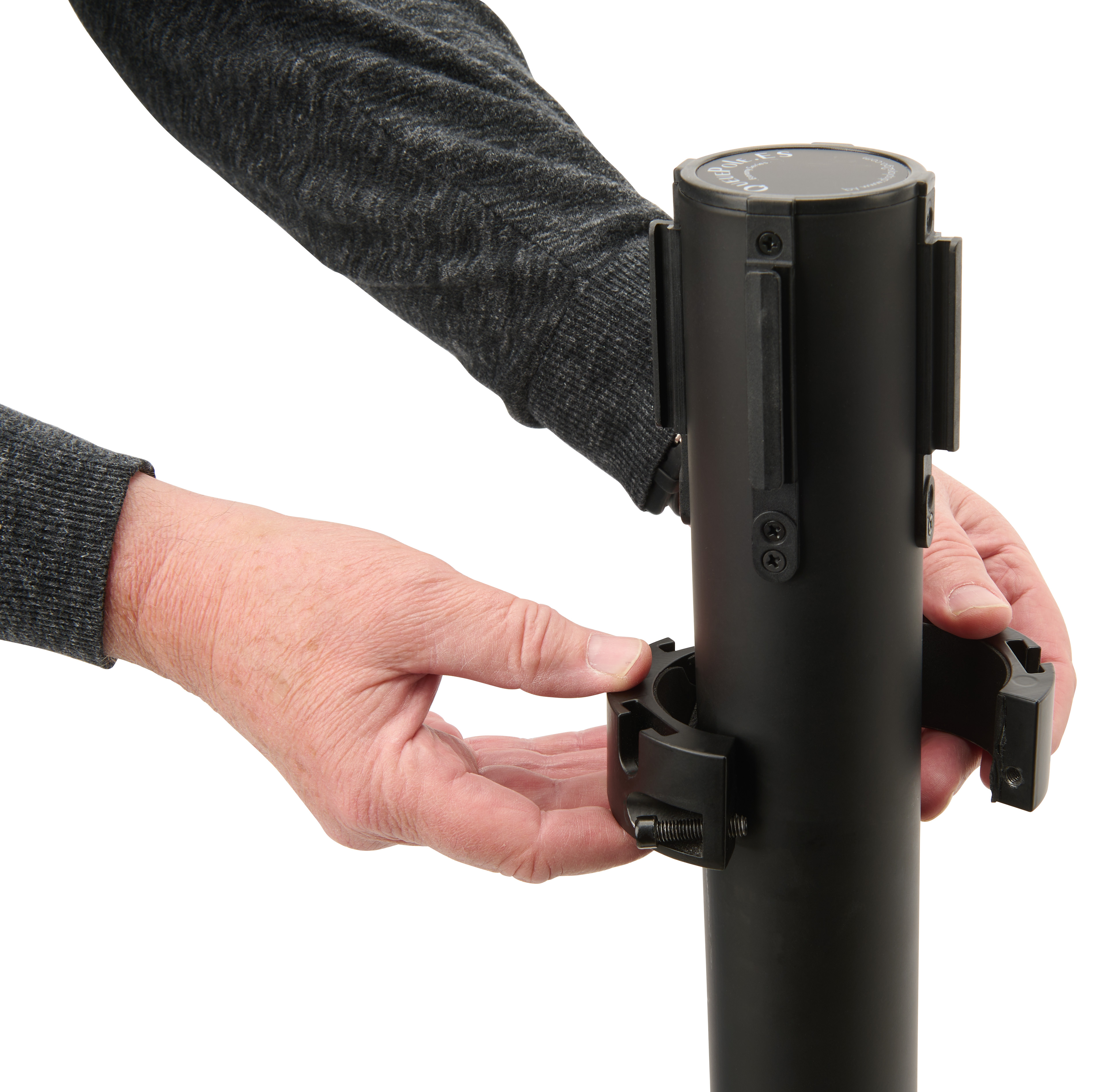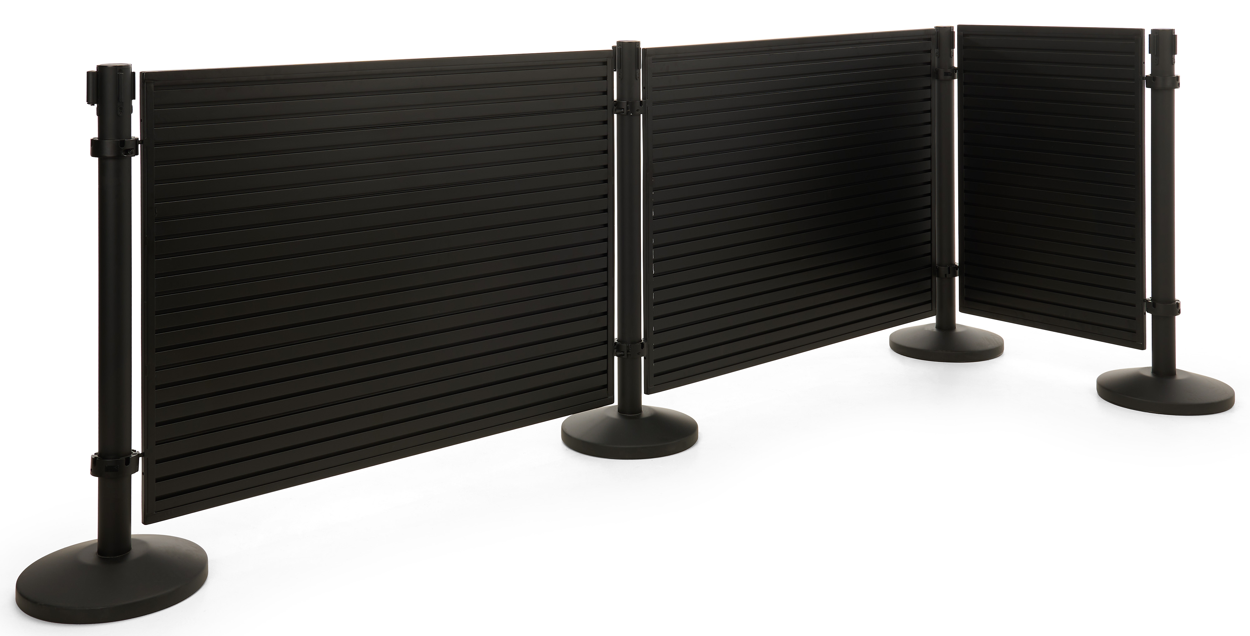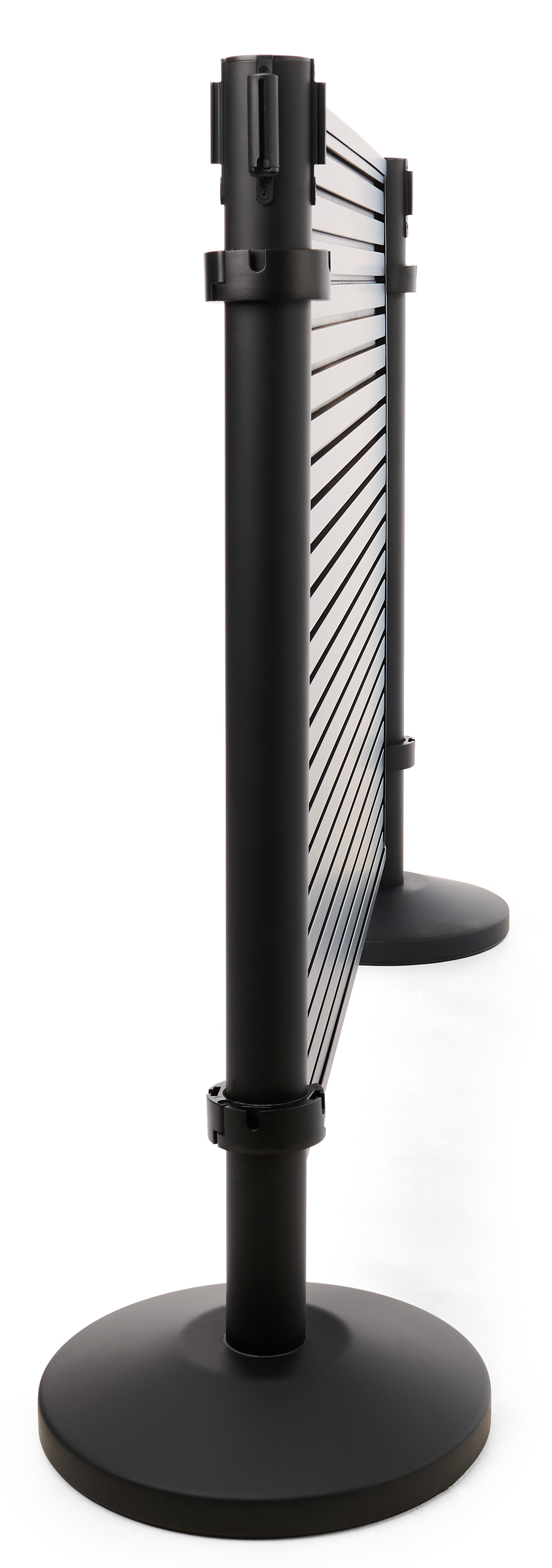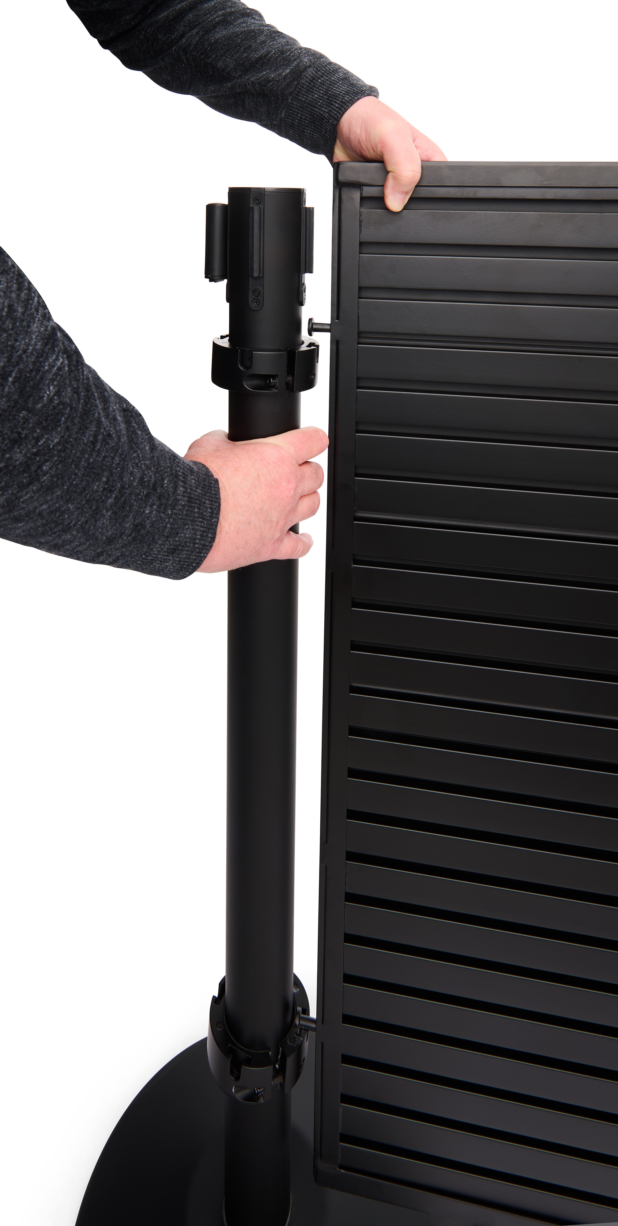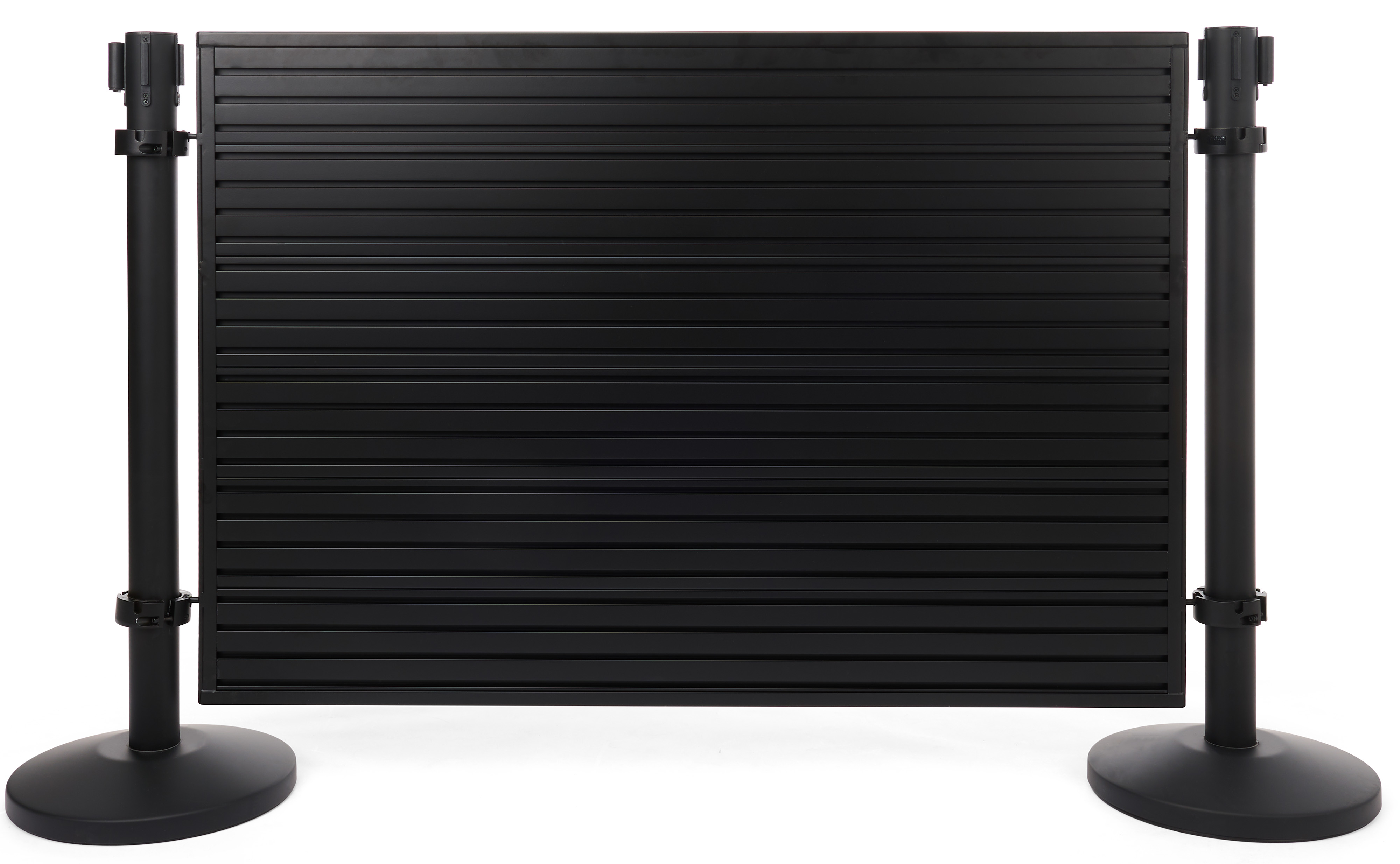 50″ Slatwall Stanchion Display w/ (2) QueuePole Posts, Double-Sided – Black