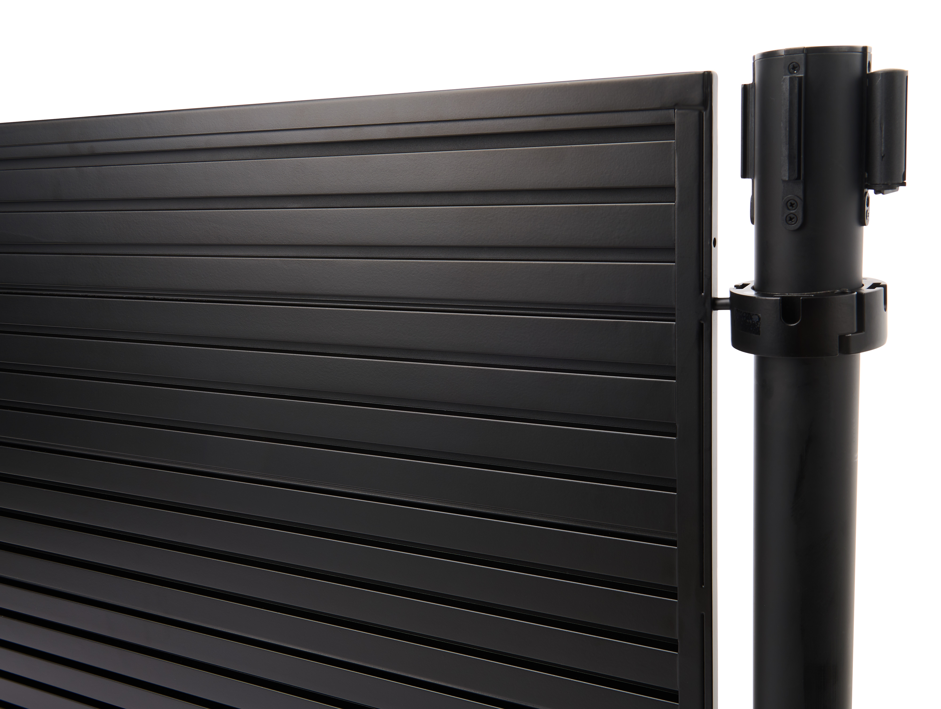 Slatwall Merchandiser with Two QueuePole Stanchions and Powder Coated Aluminum Finish