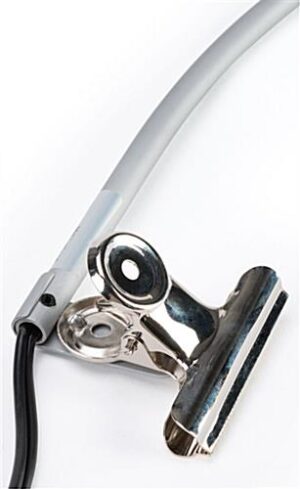 Enhance retractable banner stands with this silver halogen exhibition spotlight for additional illumination that will help attract visitors to your expo booth. The 50w bulb is set in an adjustable lamp head and emits a vibrant yellow shine that is guaranteed to brighten your display even in well-lit rooms. As well, the stainless steel clip on this trade show spotlight opens up to 0.315” to easily attach to most poles. Once the unit is mounted, the lamp cover has a moving range of 40° that can be easily adjusted for the ideal illumination angle on the display. The 10’ cord offers ample length to allow you to easily set-up banner stands without needing to be right next to the outlet. Since the 50w bulb has a natural lifespan of 2 years, this spotlight is ideal for any business looking for a multi-use lighting accessory to complement their graphics.