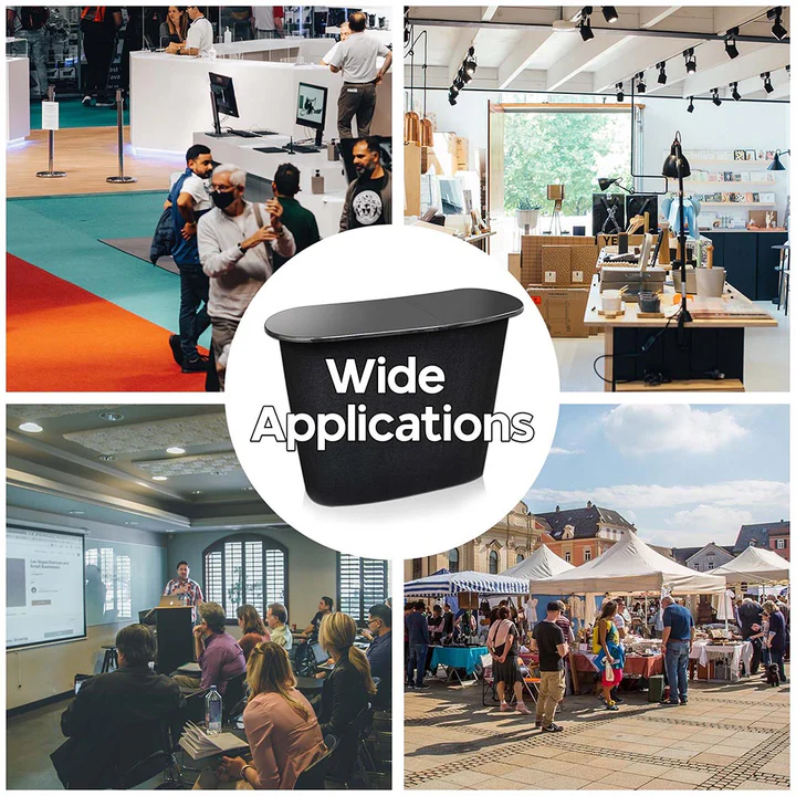 - Fold It Up, Set It Up: Our display exhibition counter is like magic – it folds up neatly for space-saving storage when not in use. It can also unfold in a snap for quick setup, simplifying the assembly process. Perfect for those on-the-go exhibitions!