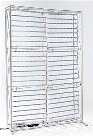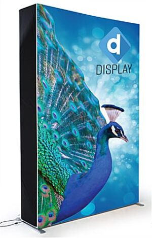 This single-sided LED SEG fabric light box is sure to draw attention to your booth at the next trade show. Equipped with a frameless 5’ x 7’ full color dye sub silicone edge graphic, a 10,000K illuminated display, black rear and side panels as well as a simple pop up style design, this exhibit offers high quality at an entry level price for safe use in public environments. This custom single-sided LED SEG fabric light box is flame retardant. The 5’ x 7’ backlit wall is a versatile choice that will work with many different expo booth configurations. Your custom graphics will be featured on a frameless polyester tension cover that will showcase the rich colors of your design and grab attention of passerby. The SEG fabric light box is made complete by the addition of three high quality carrying cases that allow you to easily transport the backlit display from one event to the next!