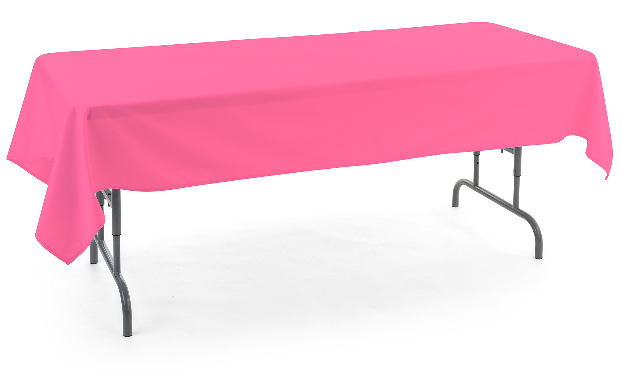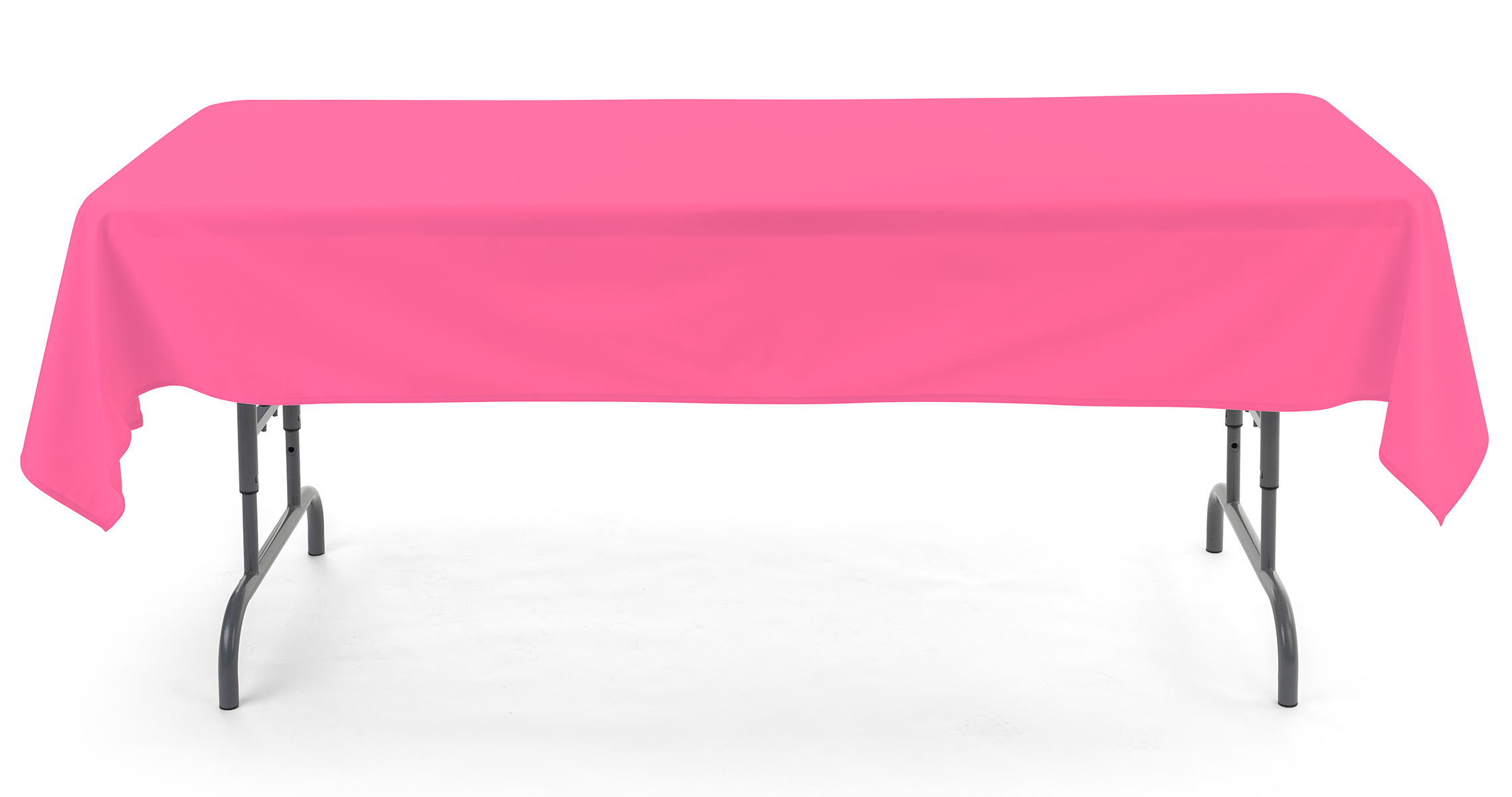 Our rectangle tablecloths are designed to keep unsightly, scratched, or discolored tabletop areas hidden from view while offering a solid base to present merchandise, food items, or gifts. Each table cover is made from 100% polyester — a durable, long-lasting fabric that’s ideal for trade show exhibitors or event coordinators looking to make a one time investment that will last through multiple seasons. Our rectangle tablecloths, also known as table skirts or poly throws, are ideal for banquet halls, reception areas, or booth displays and help to beautify any presentation. Need a reusable, machine washable, table throw to help maintain a professional presentation event after event? Each short-sided rectangle tablecloth provides a bit of draping underneath your table, leaving space for boxes or any extra supplies you may need while preventing the linen from bunching or bubbling, as there is no additional fabric. Our table drapes are an inexpensive way to create a more polished, professional, and refined look in any public space, be it a corporate event or a family gathering.
