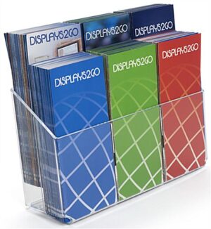 Brochure Holder Display – This literature rack is designed to be used as a wall mount or a countertop unit. It has rubber feet to prevent marking of your counter, it also has rear mounting holes so it can be hung from the wall. Pockets are 2″ deep and designed to accommodate standard 4″ x 9″ brochures. The overall literature rack display dimensions are: 13″wide x 7″high and the front panel is 5″ high. This brochure holder is great as an acrylic brochure display, countertop holder, or as a bank display.