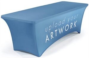 Our 6’ spandex table cloth made of high quality 180g polyester fabric includes custom printed logos, text, graphics and colors designed by you to boost brand awareness. With its chic design, this cover will catch the eye of any passer-by at your event. The designable spandex table cloth features a full back with a zipper closure, aiding you in the ability to have extra storage space underneath. The full bleed custom printed area on the rectangular cover gives you plenty of room for your brand’s logo. For eye popping customization features as well as security for your products underneath, this table cloth is a must-have for any event, trade show or convention. Utilize this rectangular cover with compatible 72” folding furniture pieces to present yourself in a professional and creative manner!