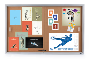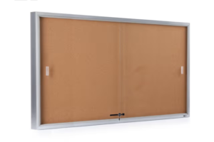 60 x 36 Enclosed Cork Board with Locking Doors – Silver