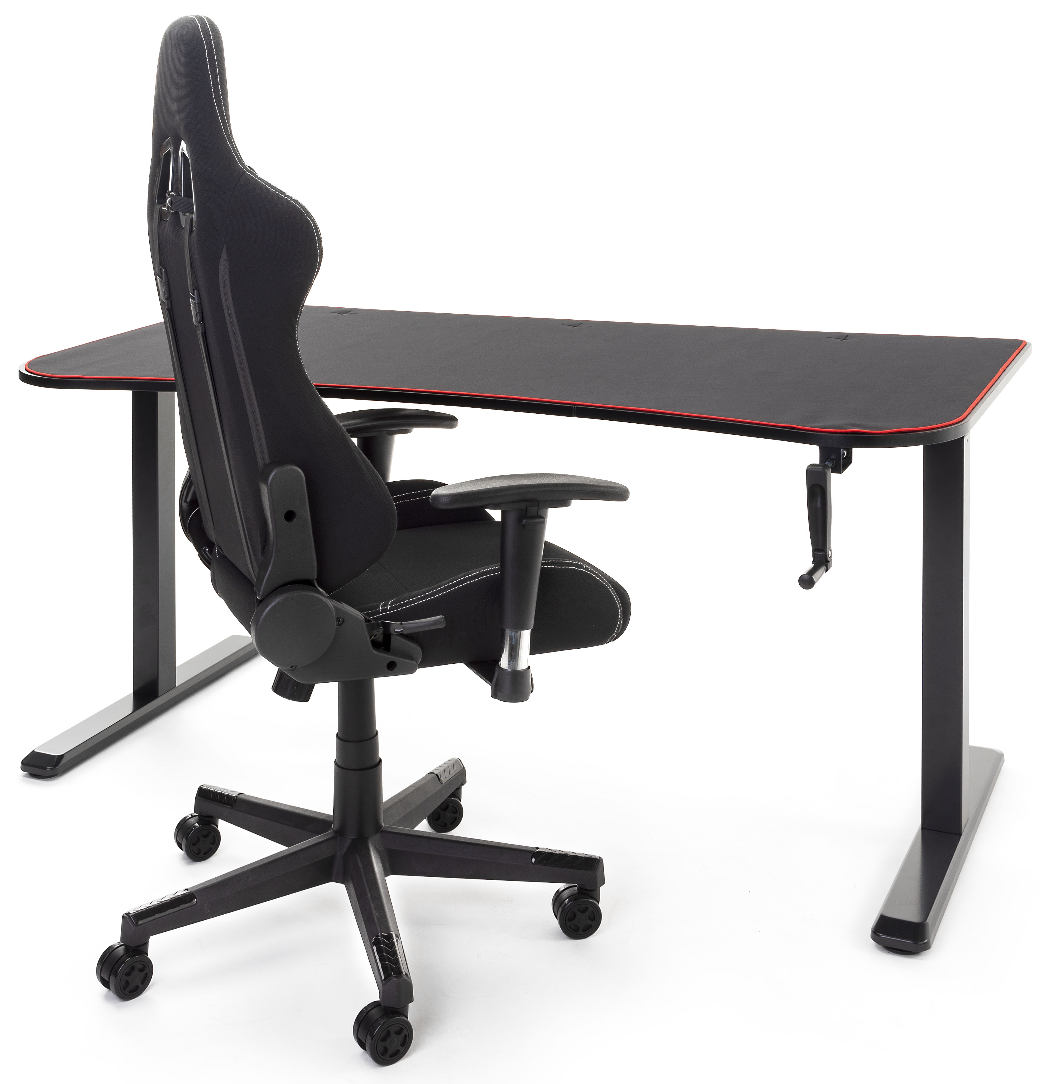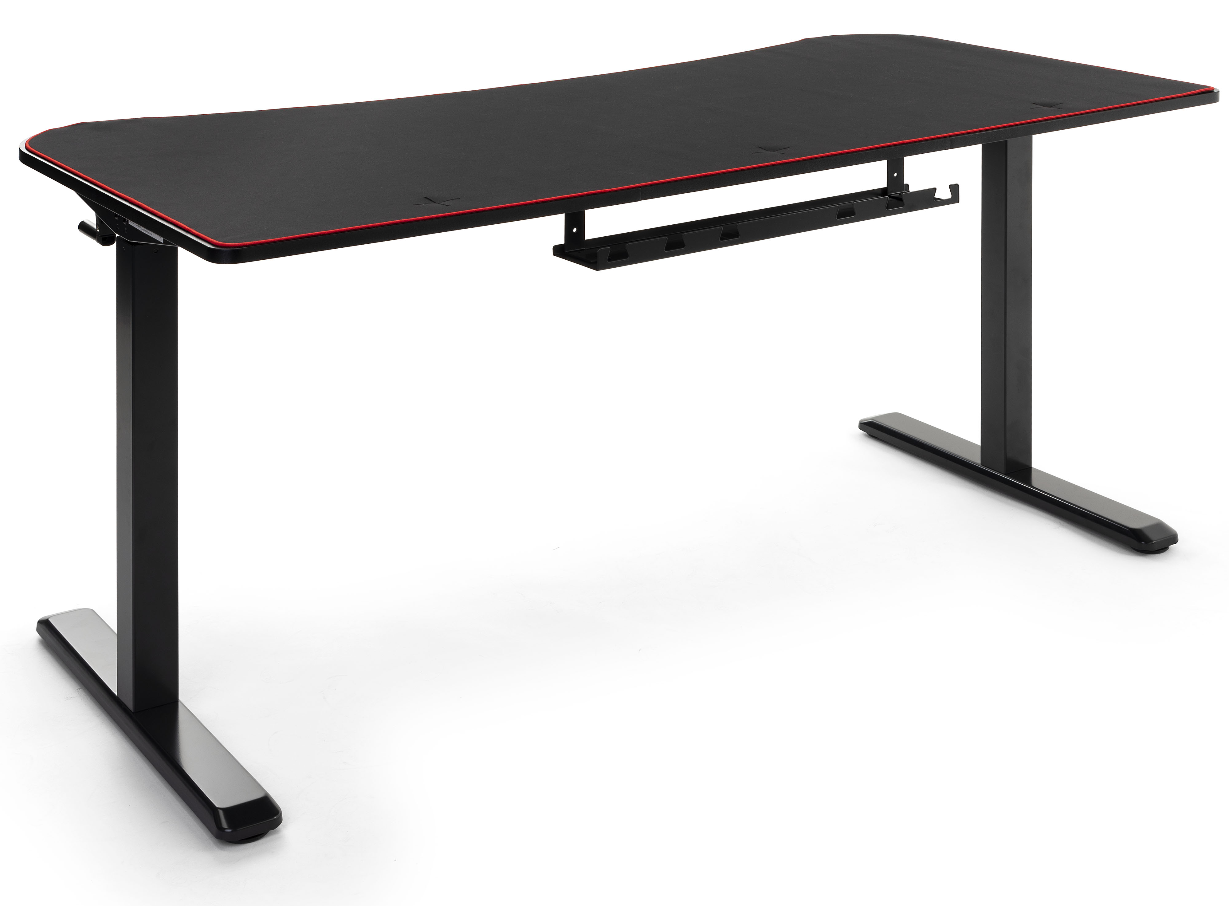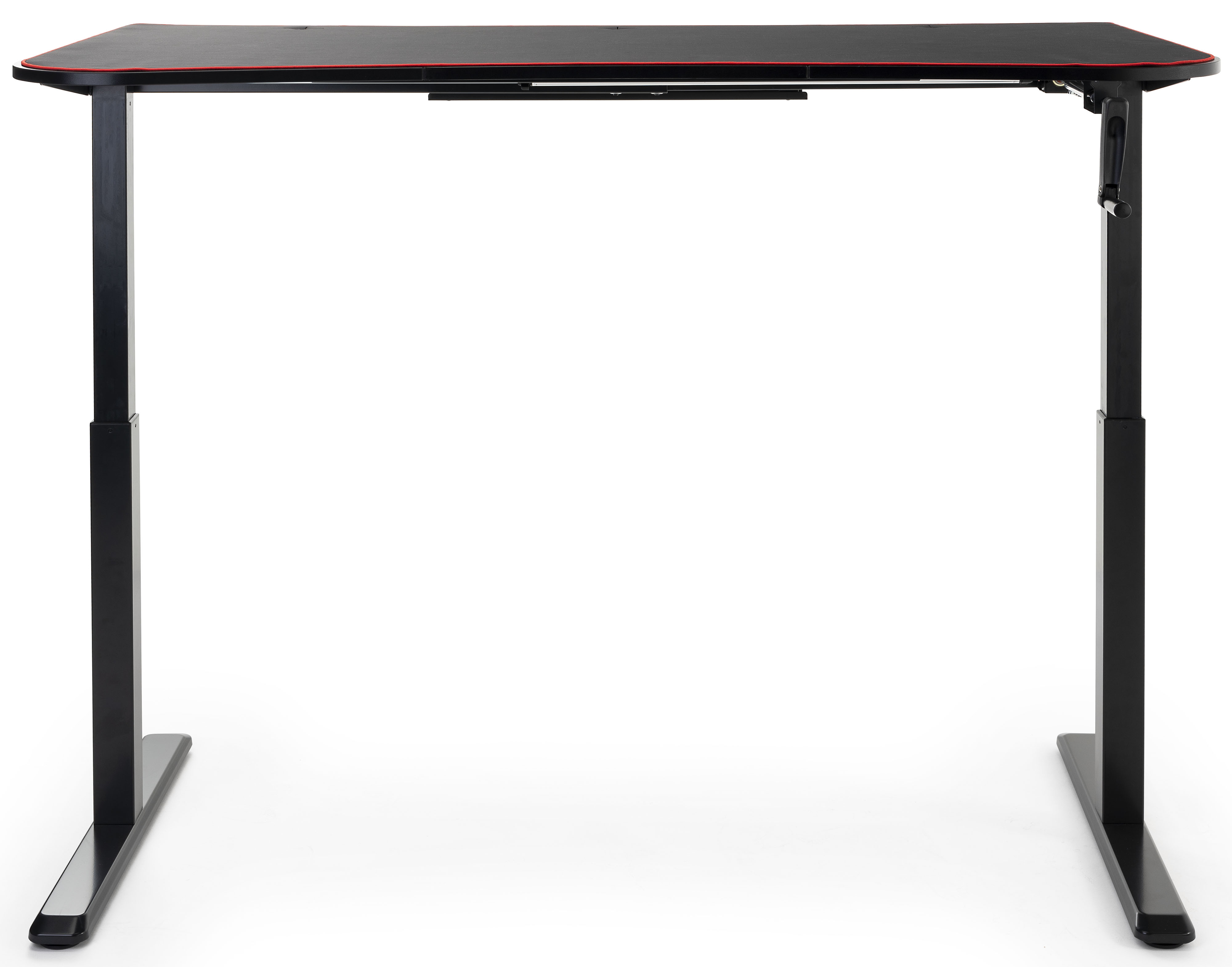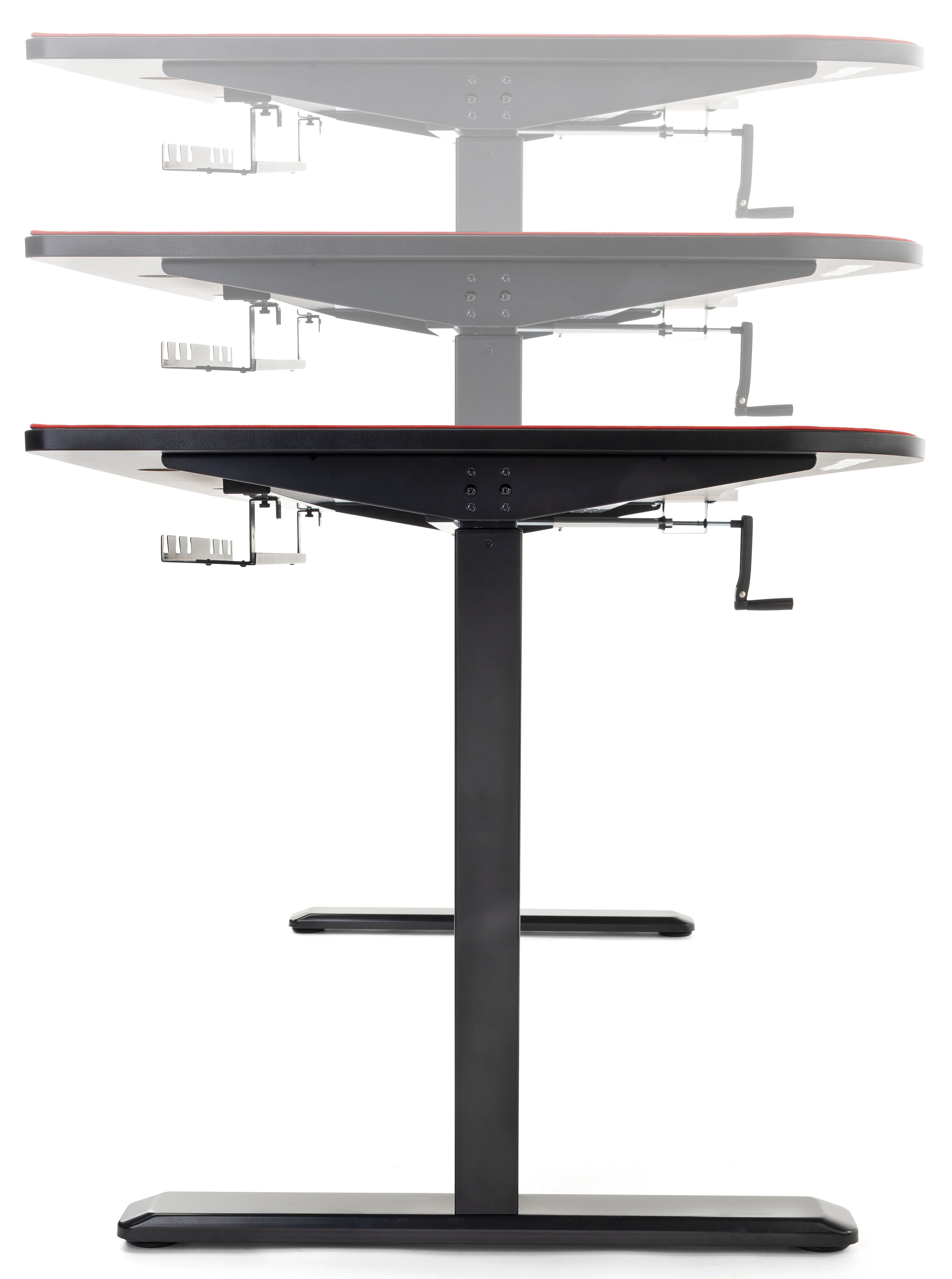 This ultra-wide adjustable computer desktop provides plenty of display space, perfect for your serious working, studying, and gaming goals. Each ergonomic sit-and-stand table’s surface is uniquely covered by an edge-to-edge high-quality neoprene mat that will remain in place during long hours of mouse operation. This matte black adjustable computer desktop with 63″ wide x 31″ deep desk board features a tapered edge design that places you closer to the monitor and provides pressure reduction to reduce forearm fatigue from hours of working or gaming. Choose between sitting or standing by using the detachable hand crank for height options from 29.5″ minimum to 48.8″ maximum. The durable t-shaped steel legs on this adjustable computer desktop adheres to the matte black particle board table top resulting in a heavy-duty fixture that can withstand up to 110 pounds. Additionally, a built-in concealed cable management system keeps your area distraction-free and unruly cords neatly in place. It’s time to level up with our high-quality ergonomic sit-and-stand desk that is sure to place you in the perfect position every time!