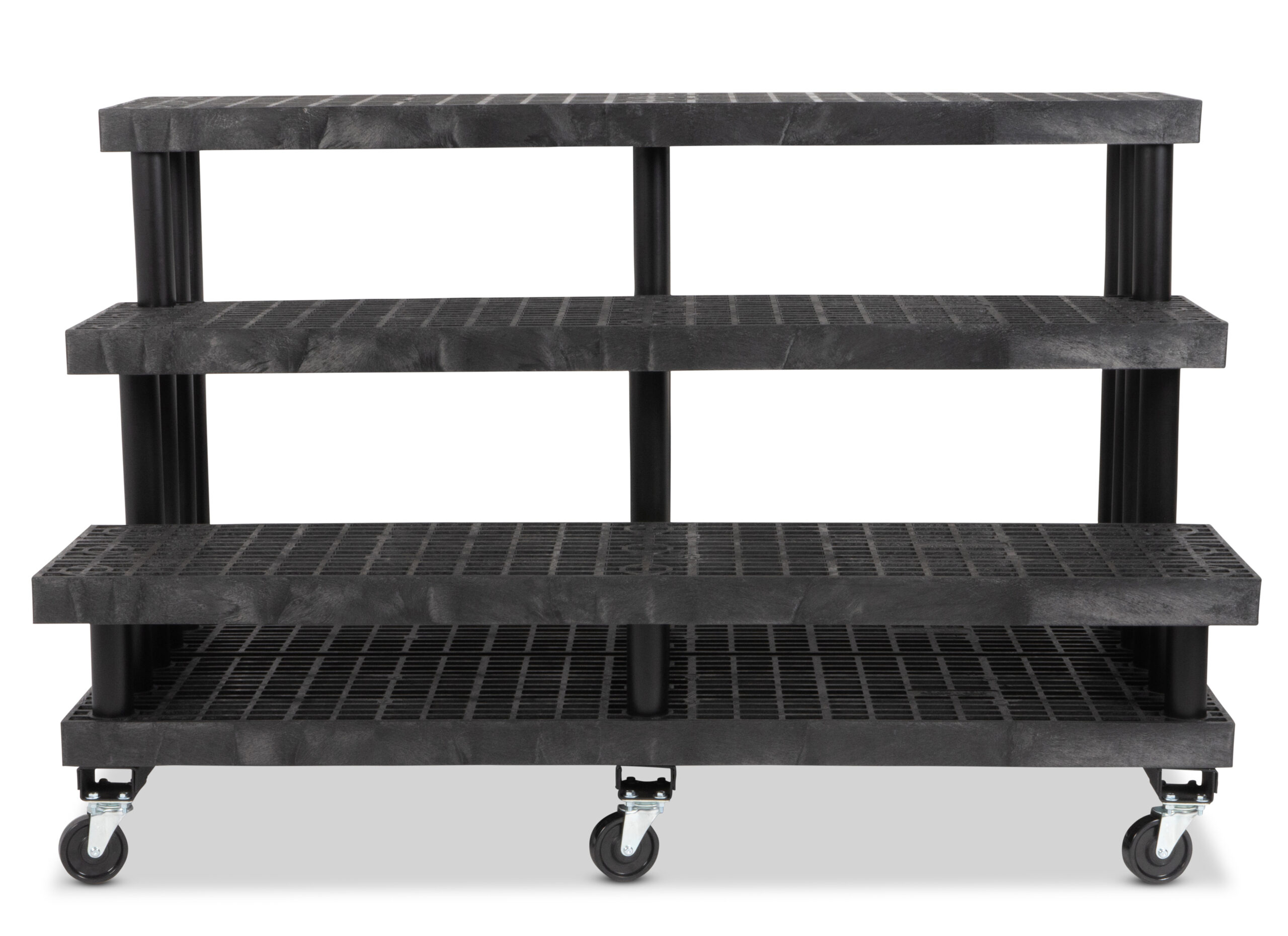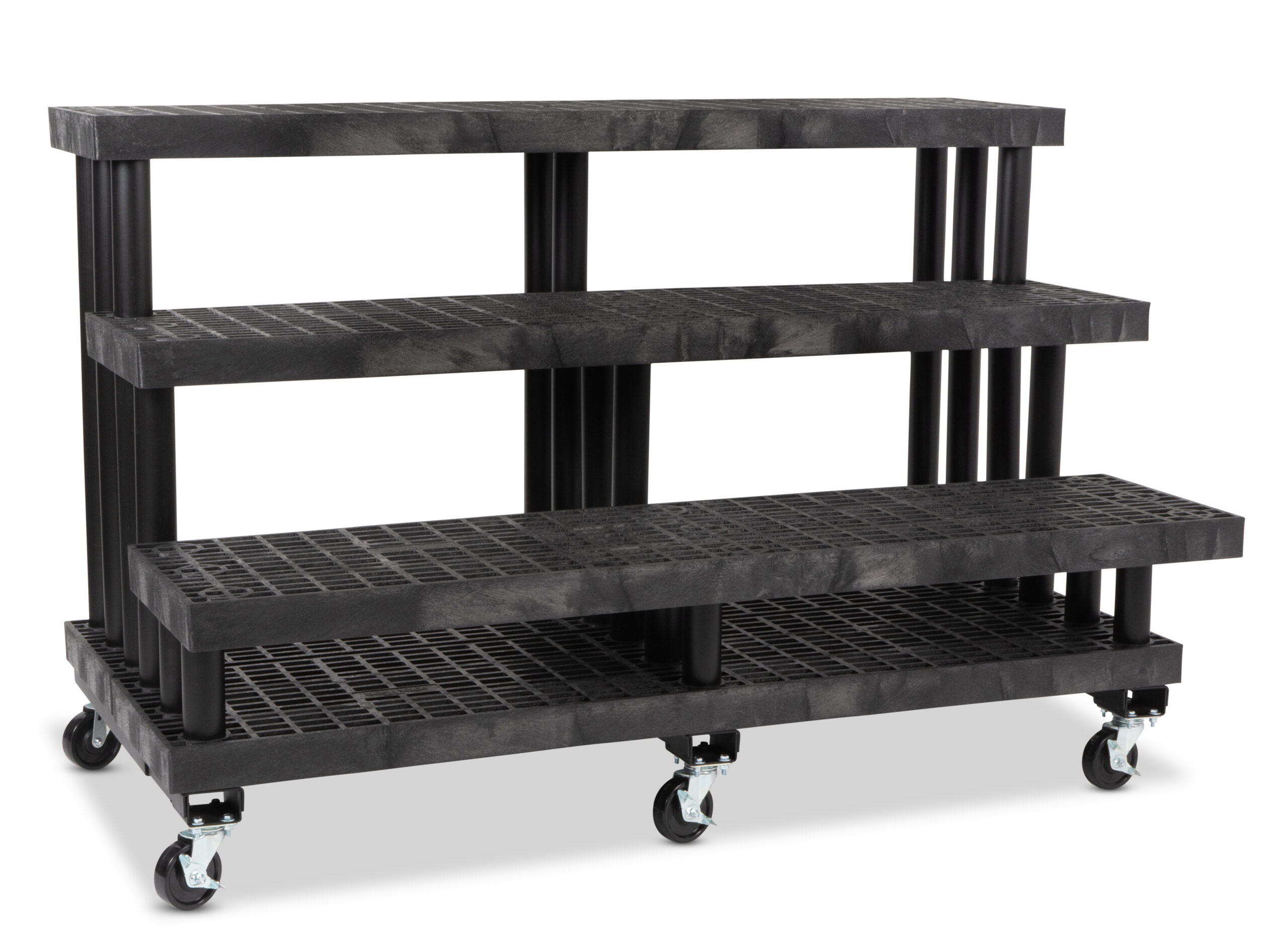66″w Garden Center Shelving Display w/ Caster Wheels, Weatherproof, 3-Tiers – Black