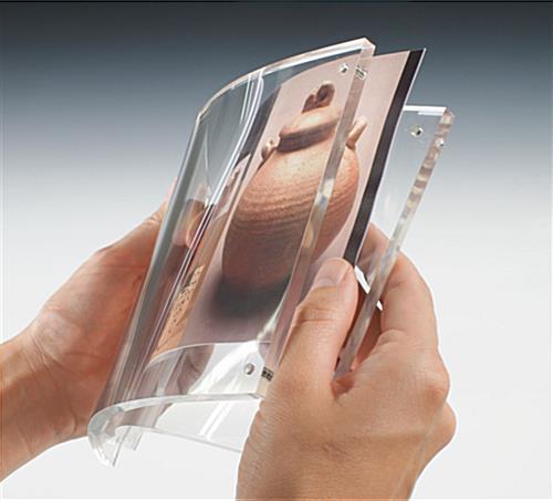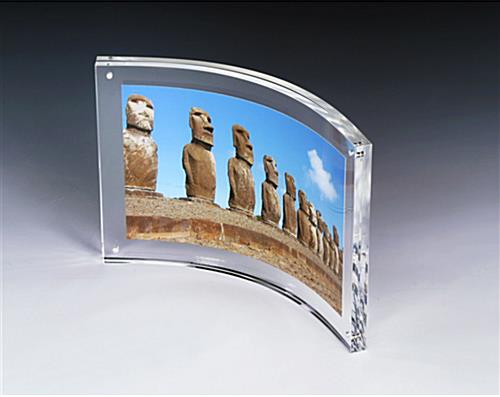 This magnet frame is an elegant curved version of our straight photo frames. This picture frame, magnet frame provides an affordable way to display photos and pictures. Strong magnets sandwich the panels together for a simple and effective display. This sign holder is the perfect magnet frame for home use or on any point-of-purchase counter.