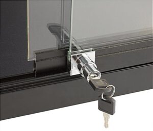 This retail display counter with LED lights is the perfect accessory for your new start up boutique. These store fixtures are ideal for showcasing jewelry, collectibles, or other high end merchandise that you would like to keep safe from public handling. The see-through display counter is equipped with 2 adjustable tempered glass shelves so that you can add items of different sizes. The cabinets also have foot levelers at the bottom of the aluminum base to adapt to uneven floors. Your jewelry will be safe within the confines of the store fixture by utilizing the push-in lock on the back side of the display counter. Combine this cabinet with others in the Essentials line to create a seamlessly designed configuration for your showroom.
