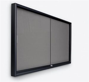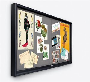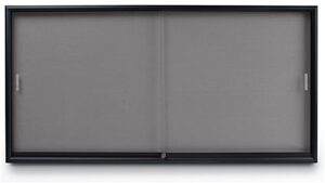 A fabric tack board is useful in public settings to display useful information for customers and visitors to see. These 6′ by 3′ cork tackboards are easily viewed from the across the room. This fabric tack board, for interior walls, can display a large amount of information on the wall. The covered bulletin sold here is constructed with a decorative frame and enclosed design. This fabric tack board, with decorative frame, surrounds an interior gray surface. This surface is used to tack important messages and photos for visitors to view. The sliding doors allow users to easily post and change information out quickly on this fabric tack board, that is constructed with rolling guides. Thumbtacks or pins can be used to display printed material on this covered bulletin. A fabric tack board, that is 72″ wide, is ideal for high traffic areas. Schools, offices, town halls, and hospitals can all benefit from purchasing one of these cork tackboards