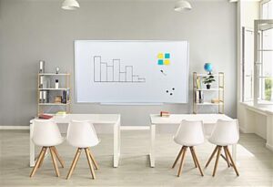 This magnetic ghost grid dry erase board measures 72″ x 40″, giving you plenty of space to make graphs, calendars, charts, scrum notes, and more. The easy to assemble whiteboard comes with all the necessary hardware, along with an attachable marker tray that snaps into place. Use our wall mounted magnetic ghost grid dry erase board, which includes a black marker with an eraser and magnets, for pinning paper, making graphs, and taking notes. The 2″ x 2″ grey lines on the surface help make writing easier and keep charts organized. This landscape wall mounted whiteboard has a galvanized steel exterior for smooth writing and easy erasing while resisting staining for years of use. The durable aluminum frame adds a modern professional touch to your office and classroom. Use our landscape magnetic ghost grid dry erase board to promote innovation within your office while improving communication and organization.