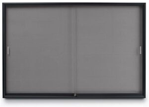 This office bulletin board, that is a gray color, is non-obstructive to other furniture in the space. These wall accessories are mounted flat to the wall. An office bulletin board, that is similar to message corkboards, includes tempered glass sliding doors. These units are easy to slide open and shut to quickly change information out. Each office bulletin board, also known as wall accessories, is ideal for hospitals, schools, museums, car dealerships, and meeting rooms. Once installed, all hardware will be hidden. Install this message corkboard, office bulletin board in any public area to keep everyone informed!