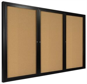Large corkboards are a traditional way to communicate with guests and visitors of an establishment. These 72” by 48” bulletin displays are a great way to showcase information and ideas to the community. Large corkboards, with black frames, are long lasting and durable. This bulletin display allows users to post and repost memos, messages, letters, and photos repeatedly. All large corkboards, that are 72 inches wide, have acrylic swingframe doors. The door design allows users to change out information quickly. These large corkboards, with cork interior, keeps material safe inside. The doors are constructed with three locks and include 3 keys.