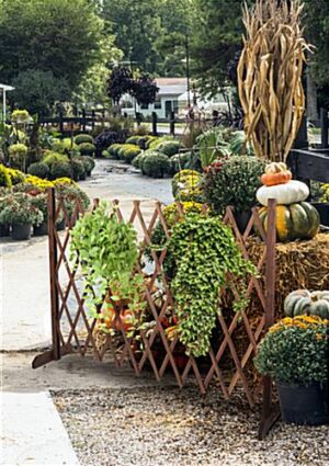 Our expandable trellis fence has a unique accordion design that can extend up to 78 inches wide, ideal for sectioning off high-traffic areas throughout your establishment. Constructed of durable cedar wood with a weather-resistant carbonized finish, each collapsible wood partition is suitable for indoor or short-term outdoor usage, depending on your merchandising needs. Standing at 47.25″ tall, each expandable fence features weighted fold-out feet for added stability while this fixture is in use. Great for craft fairs, farmer’s markets, restaurants, cafés, and more, this collapsible wood partition allows you to quickly add a layer of privacy across large spaces and easily separate outdoor seating areas for guests. Prop this multi-functional expandable fence with potted plants or divide up flower beds, to add a functional yet decorative charm to greenhouse and garden center displays. Each lightweight, extendable lattice barrier easily assembles and disassembles for effortless transportation and can be brought inside at the end of each day for storage. Purchase a single freestanding trellis fence or buy multiple wood partitions to place side-by-side for a compelling showcase that is sure to provide privacy for patrons from restaurants to cafés!