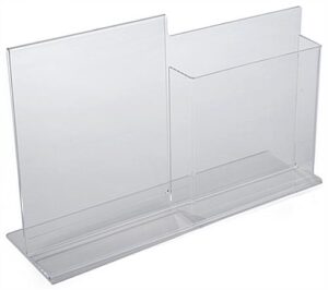Are you shopping for a sign display that offers both an area for promotional signage as well as a pocket for literature? This combination fixture is the answer. Each sign display is constructed with quality acrylic that provides a clear view of the displayed items. The clear design offers a neutral look that is suitable for any type of business setting. This sign display is often seen in waiting rooms, business lobbies, and travel agencies. The frame is 8.5″ x 11″ which is the same size as a standard sheet of copy paper. Users can update this sign display regularly without having to utilize a print shop or graphics design company. New signage can be created on a PC, and printed on a common office printer.