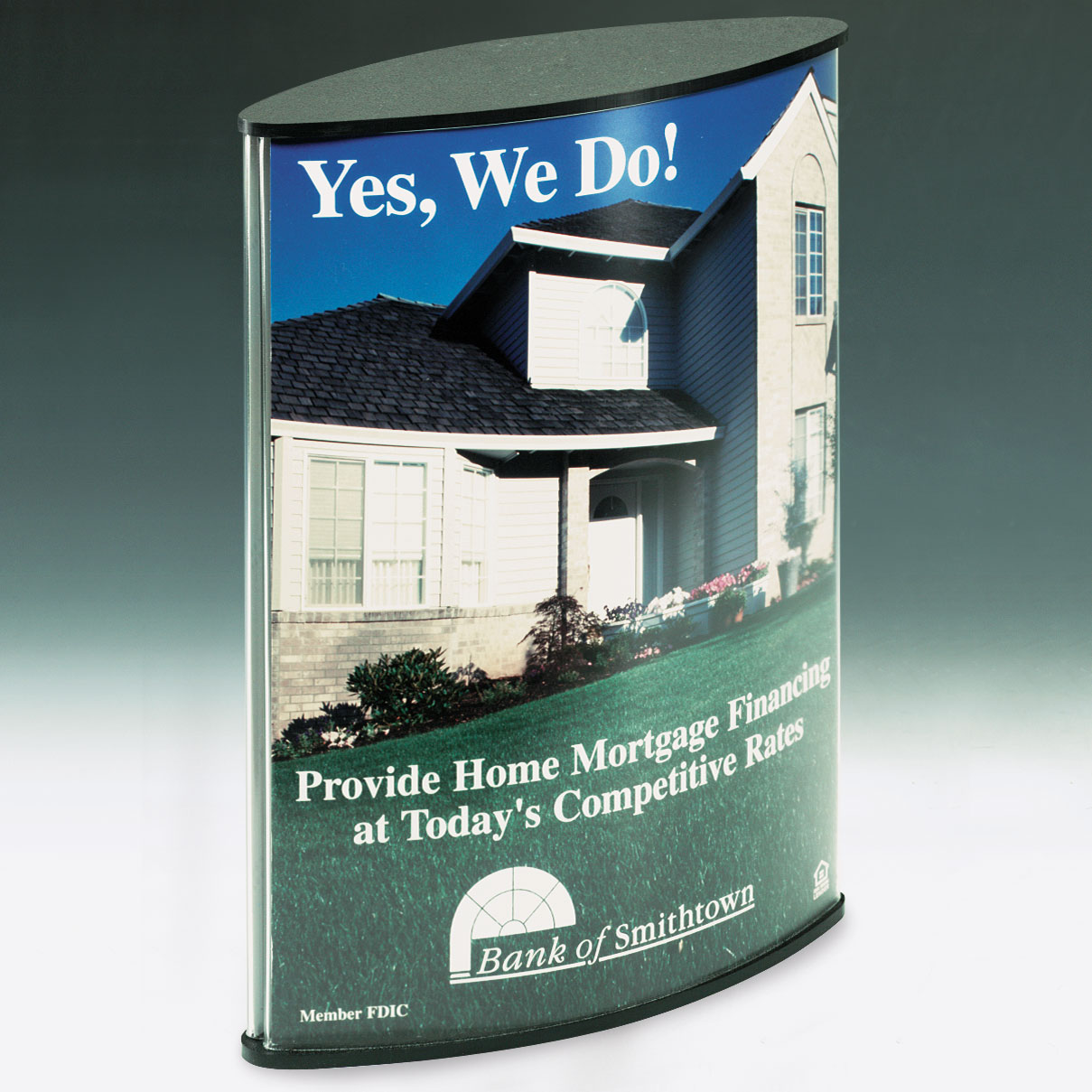 Are you shopping for a sign holder that doesn’t have a glass lens? Do you want a frame that will stand out and cause viewers to notice your advertisements? This sign holder that is double-sided is the solution. The unique frame features an oval shape that accommodates two 8-1/2″ x 11″ prints in the same unit. The base and top are made with heavy duty black plastic for stylish accents. Each sign holder with a clear acrylic center is ideal for posting important messages or advertisements. A great new look for countertop presentations. Use this sign holder to post interest rates in a bank lobby, or office hours in a reception area. The popular size enables users to create new signage directly from a standard office printer.