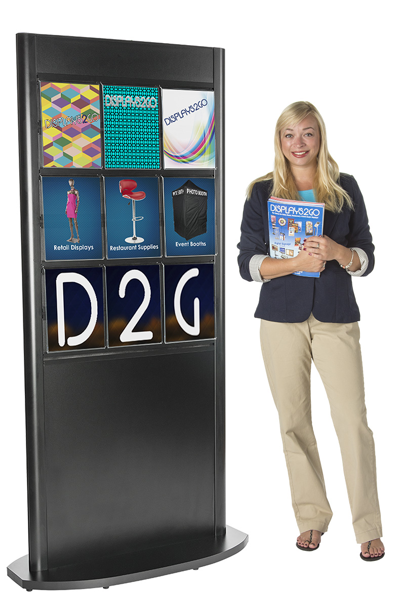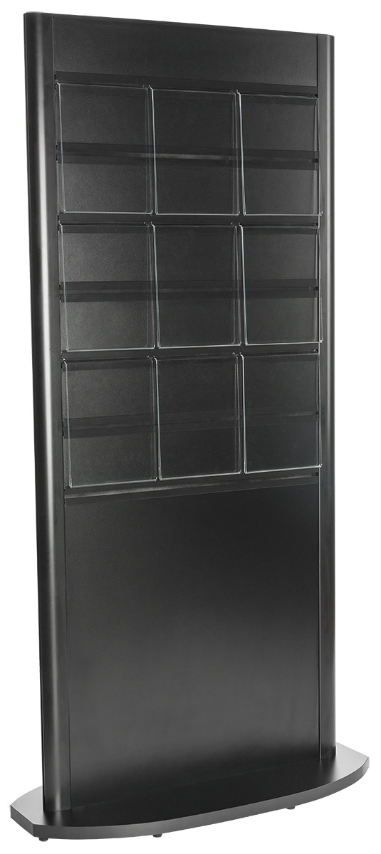 8.5″ x 11″ Slatwall Kiosk w/ 18 Sign Holders, Top Insert, Double-Sided – Black