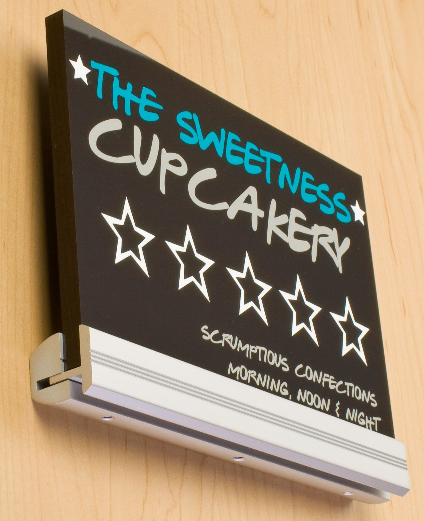 A wall mounted display, sign holder is an inexpensive means of adding a modern touch to any business. This sign support consists of a 2-piece (male & female) bracket, and includes all necessary hardware for installation. Assembly of this sign support is straightforward. First, anchor the sign support’s female bracket to the wall. Next, sandwich acrylic between the male and female pieces, hold firmly, and tighten set screws on the underside of the female bracket. This sign support will support your sign or display straight up; you can also purchase a second support to secure your sign from the topside.