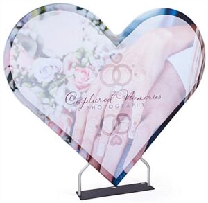 This heart shaped arch frame will add a unique flair of elegance at weddings, bridal parties, anniversaries, and more. Our pop up display is made of aluminum tubing with numbered push-pin poles allowing you to set up and break down within minutes. Easily adorn this floor standing heart shaped arch frame with colorful flowers, balloons, ribbons, and more, creating the most beautiful truss at any wedding or event. You can also pair this display with full-color custom printed single or double-sided graphics (HS7BWALLSSCP) or (HS7BWALLDSCP), that we sell separately to enhance your company’s branding. With firm curved legs and a sturdy steel base, this backdrop can be used indoors or outdoors, providing a safe and secure display in high-traffic areas. Use this floor standing truss to create a beautiful flower or balloon design to take pictures before and during any party to remember your special occasion. Our chic heart shaped arch frame can be used multiple times and decorated to match any event at the time.